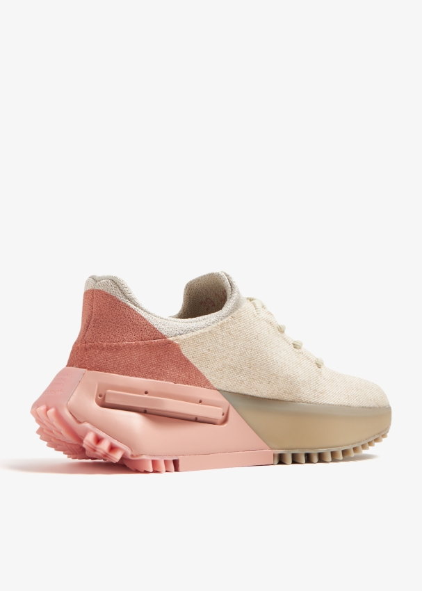 تتعاون دار أديداس مع فاريل ويليامز لتقدم لك سنيكرز إن إم دي إس 1 باللون الزهري الفاتح، يأتي مصنوعاً من الكانفاس مع أربطة إغلاق بلون متناغم وشعار العلامة على الجانب. يتميز السنيكرز ببنية برقبة منخفضة مع لسان علوي من وبطانة من القماش الناعم ويكتمل مع توسيد بوست التقني و سدادات من البولي يوريثين الحراري.