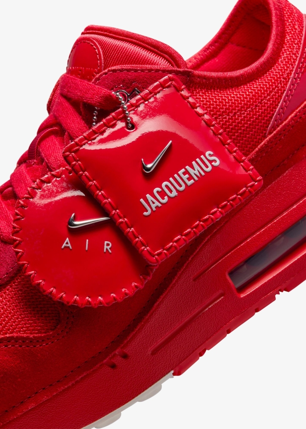 تجتمع نايك والعلامة الفرنسية الفاخرة جاكيموس مرة أخرى في تعاون جديد يتميز نسخة جديدة من سنيكرز إير ماكس 1 الأيقوني بوحي من مدينة باريس. يكرّم السنيكرز التصميم الأيقوني لسنيكرز إير ماكس 1، مع تفاصيل تشيد للمجموعات الأولى لدار جاكيموس كفتحات التهوية ذات الأشكال الغير متماثلة. يأتي السنيكرز مصنوعاً من خامات فاخرة مثل الشمواه والنايلون بألوان "يونيفيرستي ريد" و"ميتاليك سيلفر". يكتمل التصميم بشعارات نايك وجاكيموس، رباط إغلاق بطرف جلدي، بالإضافة إلى مفاتيح مستديرة ومربعة للمسة نهائية مميزة.