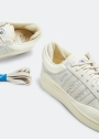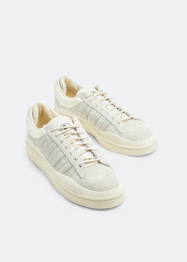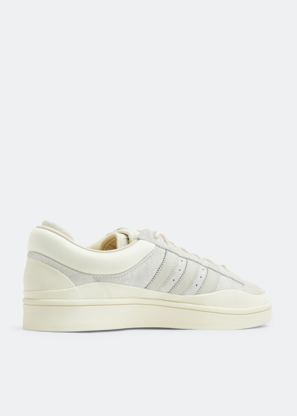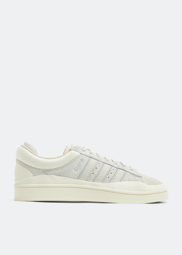 Collaborating with Grammy award-winning artist Bad Bunny, adidas reinvents their iconic Campus sneakers. Made from hairy suede, they feature their trademark 3-Stripes in leather, rope-effect laces with BB-branded tips, two sets of overlapping heel tabs and tongues that feature Bad Bunny ‘third eye’ branding, and an off-white rubber cupsole with wavy sidewalls. This pair also comes with an additional set of laces.