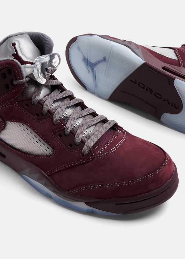 أضِف لمسة مستوحاة من الريترو إلى خزانة أحذيتك مع سنيكرز إير جوردان 5 ريترو برغندي من نايك. يتميز بجزء علوي من الشمواه باللون البرغندي مع لمسات باللون الفضي، ألواح شبكية شفافة على النعل الأوسط واللسان وتوسيد بتقنية "اير سول" على الكعب مع نقش متعرج على النعل الخارجي.